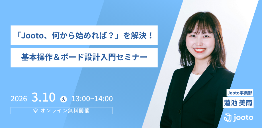 Jootoの基本的な操作方法はもちろん、最も重要な「最初のプロジェクトボードの作り方(考え方)」について、フローチャートを用いた診断を交えながらデモ形式で分かりやすくご紹介します。 この1時間で、Jootoを使いこなすための基礎をマスターし、明日からチームで活用を始められる状態を目指します。